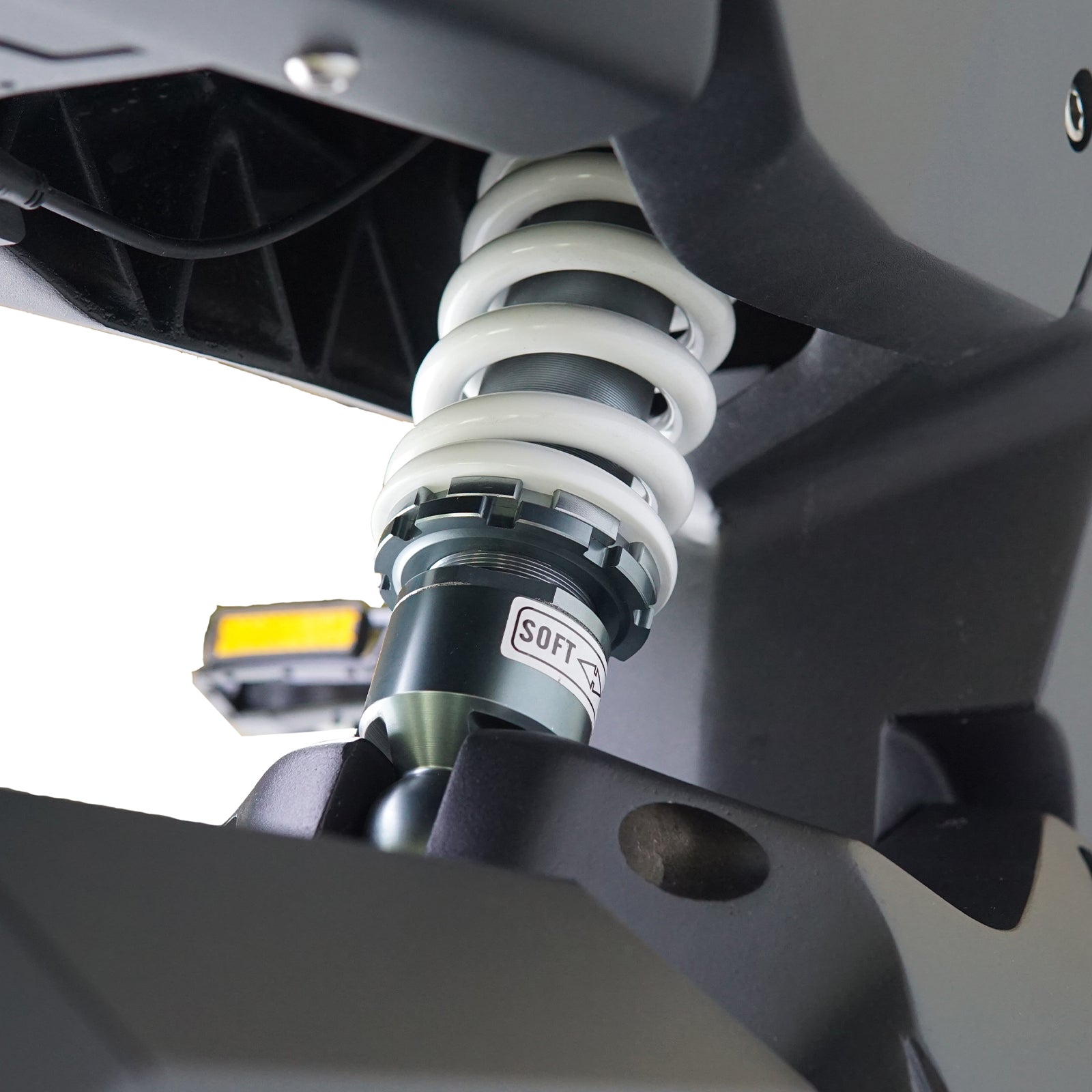 - The dual-column inverted front suspension + 880mm 25mm spring rear suspension system